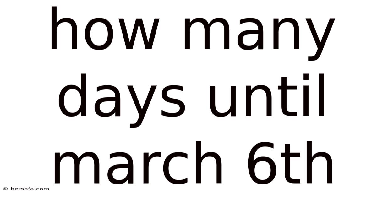 At first glance, the question "how many days until March 6th?" seems like a simple, momentary query—a quick check on a calendar or phone. On the flip side, this deceptively simple question opens a door to a fundamental aspect of human organization: our measurement and perception of time. It is a practical tool for planning, a marker for personal and global events, and a subtle exercise in understanding the calendar systems that structure our lives. Which means whether you are counting down to a birthday, an academic deadline, a cultural festival, or simply satisfying curiosity, determining the precise number of days until a specific future date like March 6th requires a clear understanding of calendar mathematics, current date reference, and the occasional nuance of leap years. This article will transform that simple countdown into a comprehensive exploration of temporal calculation, its real-world applications, and the common pitfalls that can lead to errors.
