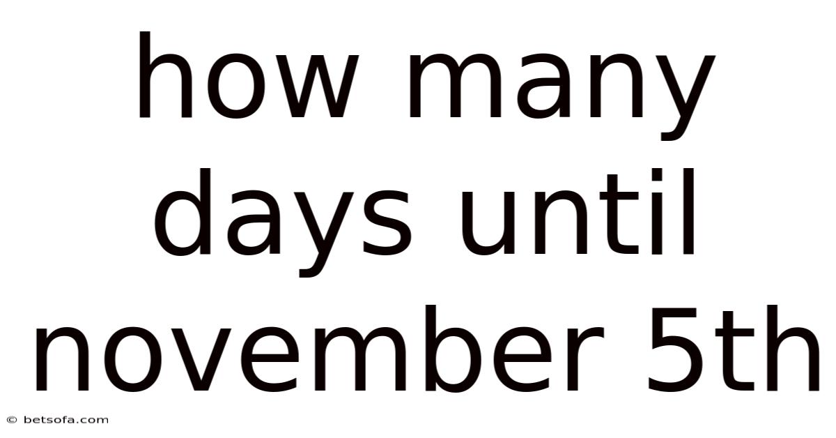 Knowing how many days until November 5th is more than a trivial trivia question—it's a practical skill that enhances planning, organization, and time management. By mastering the simple arithmetic of month lengths and leap-year rules, you can accurately answer this question for any date pair, anytime. Whether you're prepping for a holiday, setting a project deadline, or just satisfying curiosity, the steps outlined above give you a reliable, repeatable approach. That said, keep the method in your toolbox, and the countdown will never be a mystery again. Beyond the immediate benefit of knowing the date, this ability fosters a greater awareness of time's passage and allows for more proactive scheduling and goal setting. It's a small skill with surprisingly broad applications, empowering you to deal with the complexities of time with confidence and clarity. So, next time you need to calculate the days until something important, remember these techniques—you'll be surprised at how easily you can conquer the countdown!