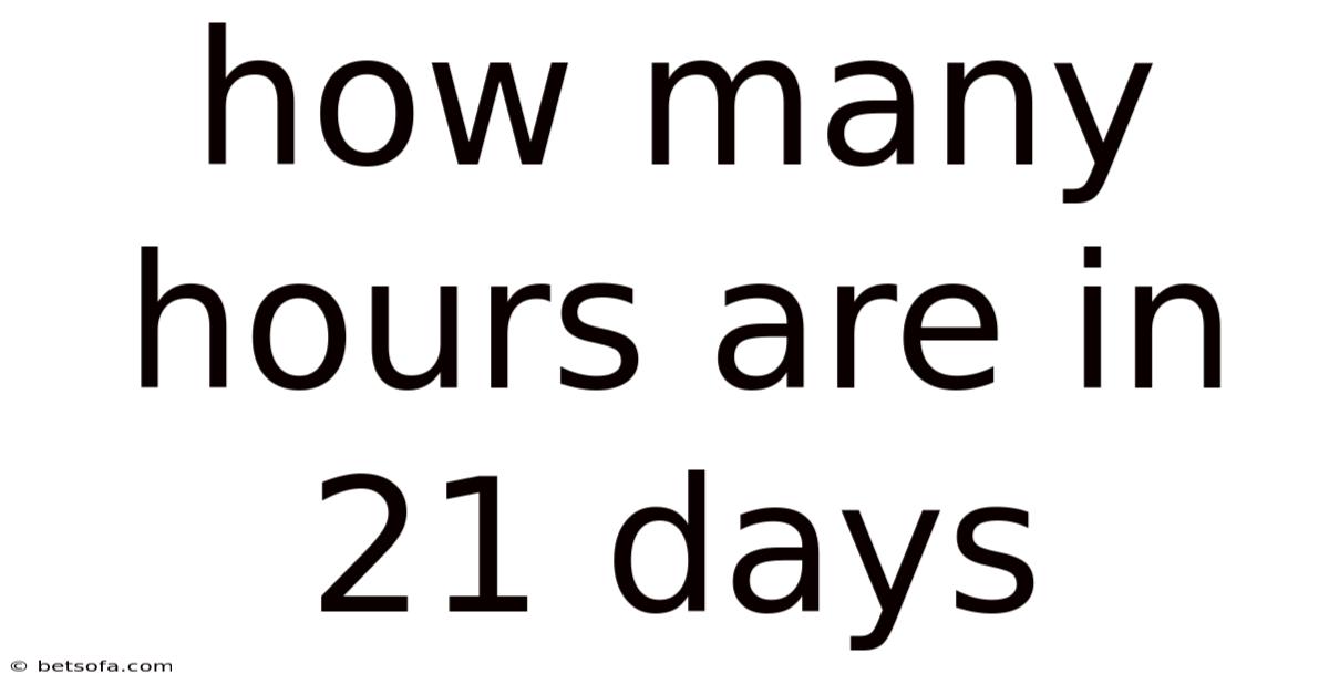 There are 504 hours in 21 days. This is calculated by multiplying 21 days by 24 hours per day.