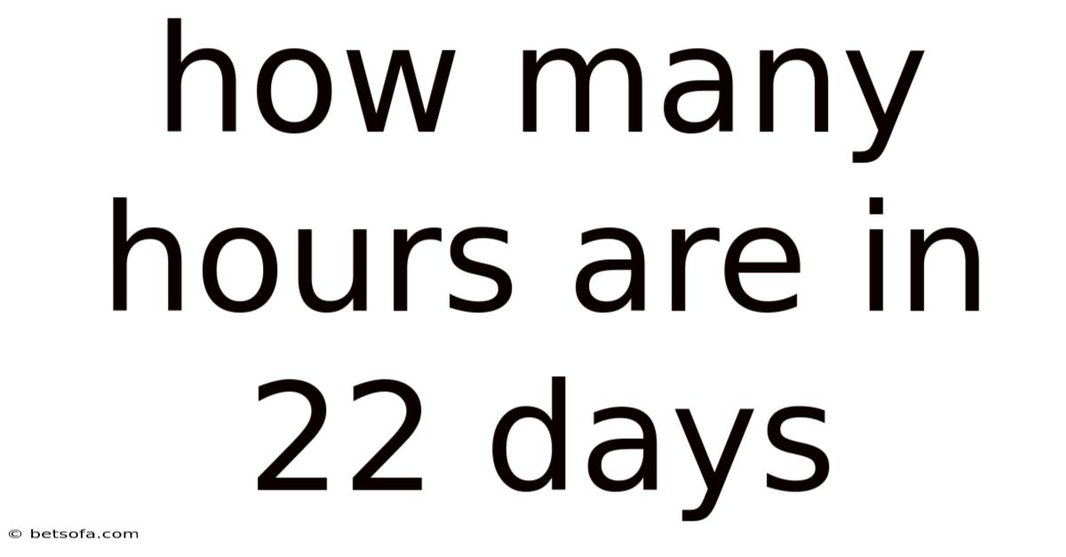 Whenyou ask how many hours are in 22 days, you are essentially converting a span of time expressed in days into the more granular unit of hours. This conversion is a fundamental arithmetic operation that appears in everyday planning, academic calculations, and even scientific research. In this article we will explore the underlying mathematics, walk through a clear step‑by‑step process, examine real‑world contexts where the result matters, and address common misconceptions. By the end, you will not only know that 22 days contain 528 hours, but you will also understand why that answer is reliable and how to apply it confidently in a variety of situations Easy to understand, harder to ignore..
