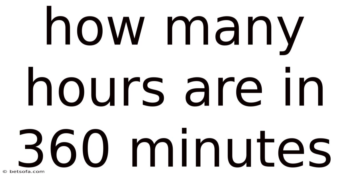 - Divide by 60: Since there are 60 minutes in an hour, divide 360 by 60.