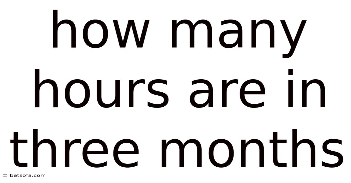 When people ask, how many hours are in three months, they are often trying to understand time in a practical or planning context. In practice, whether it’s for scheduling a project, tracking work hours, or simply satisfying curiosity, this question touches on the fundamental way we measure time. That's why at its core, the answer depends on how we define "three months" and how we calculate hours. Consider this: time is a linear progression, but its measurement is not always straightforward. To give you an idea, months vary in length, and the number of hours in a day is fixed at 24. This article will explore the nuances of calculating hours in three months, the factors that influence the answer, and why this question matters in real-world scenarios It's one of those things that adds up. Turns out it matters..