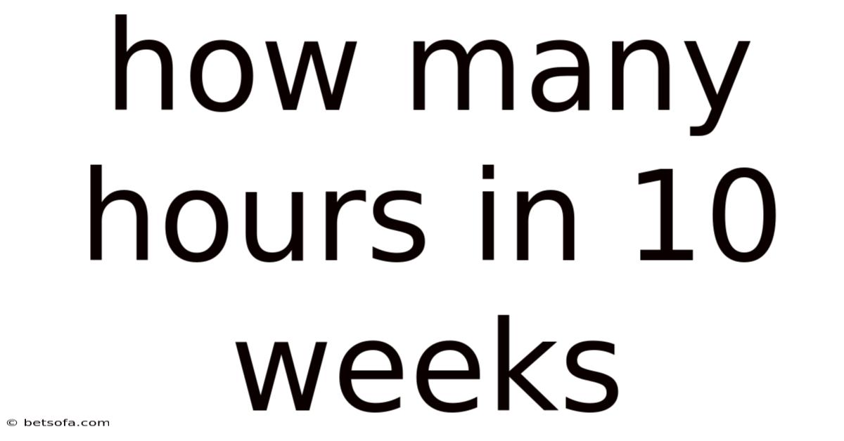Time is one of the most valuable resources we have, and understanding how to calculate it accurately can help with planning, productivity, and goal-setting. On the flip side, this calculation is surprisingly useful for a wide range of situations, from project planning and work schedules to academic planning and personal time management. Still, understanding how we arrive at this number and knowing how to apply this knowledge can significantly enhance your ability to manage your time effectively. If you've ever wondered exactly how many hours are in 10 weeks, you're not alone. So naturally, the answer is straightforward: there are 1,680 hours in 10 weeks. In this practical guide, we'll explore the calculation in detail, provide practical examples, and discuss why understanding this time conversion matters in everyday life Took long enough..