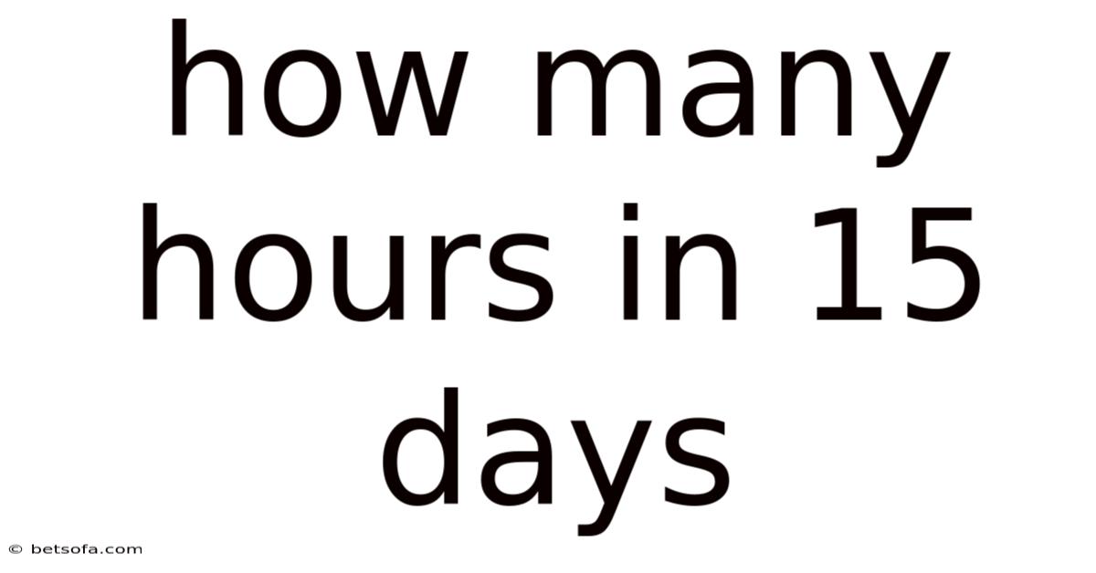 The beauty of this calculation lies in its consistency and reliability. Unlike many other measurements that can vary based on context, the relationship between days and hours is fixed and unchanging. This makes it a foundational concept that supports more complex time calculations and scheduling tasks. By mastering this simple multiplication—15 days × 24 hours = 360 hours—you gain a reliable tool that applies to countless situations in daily life, professional work, and academic pursuits Surprisingly effective..