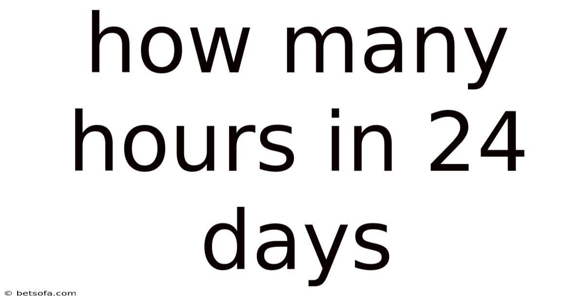 While the core conversion of 24 days to 576 hours is straightforward, its true value lies in its application. Consider project management: a 24-day timeline translates to 576 hours of dedicated effort. Breaking this down further, perhaps into 8-hour workdays, reveals a 72-day commitment. This granularity is crucial for resource allocation, budget forecasting, and setting realistic milestones. Without this conversion, scheduling becomes imprecise and planning ineffective.