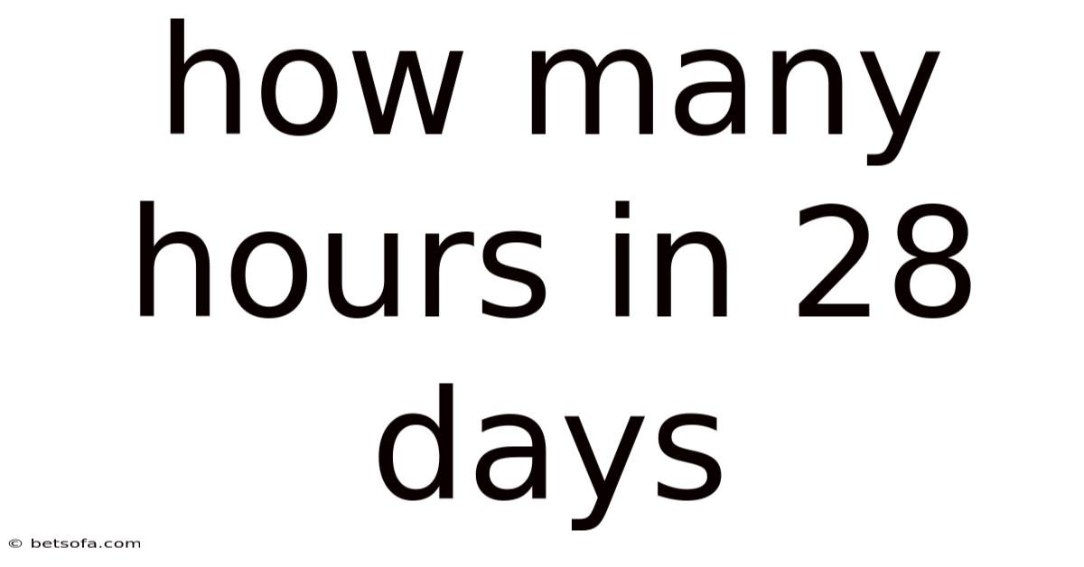 The human experience is fundamentally structured around time. " is precisely such a question. And one of the most basic questions we ask is how long a specific period lasts in smaller, more manageable units. "How many hours in 28 days?We organize our days, weeks, months, and years based on astronomical cycles and societal conventions. Because of that, this duration holds particular significance in calendars, lunar cycles, and various cultural or administrative systems. Understanding the conversion from days to hours isn't just about arithmetic; it's about comprehending the scale of time we figure out daily and how we quantify extended durations. It bridges the gap between the familiar daily cycle and the longer, often more abstract, 28-day period. The answer, 672 hours, is the starting point, but the journey to understanding its context is far richer.