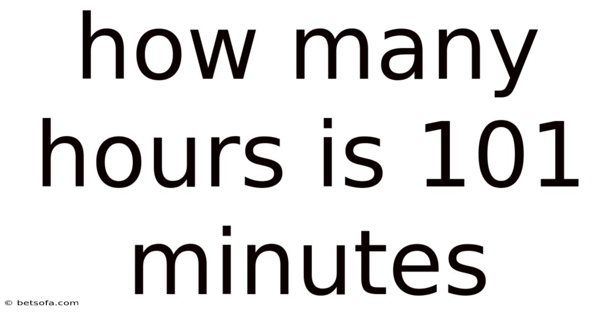 101 minutes is equal to 1 hour and 41 minutes. This is calculated by dividing 101 by 60 to get the number of hours (1.Worth adding: 6833... ) and then converting the decimal part back into minutes (41 minutes).