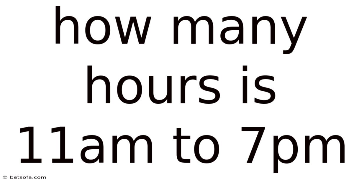 - Double-check by counting manually: From 11am to 12pm is 1 hour, from 12pm to 7pm is 7 hours. Add them together: 1 + 7 = 8 hours.