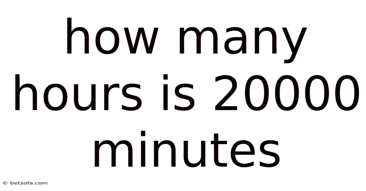 In today’s fast-paced world, time management is a crucial skill for students, professionals, and anyone looking to optimize their productivity. Worth adding: one common question that arises in everyday conversations is: *How many hours are in 20,000 minutes? * This seemingly simple query touches on a fundamental concept in mathematics and time conversion. Understanding this conversion not only helps in planning schedules but also enhances our grasp of numerical relationships. In this article, we will delve deep into the details of this conversion, explore its significance, and provide practical insights to help you grasp the value of these units.
