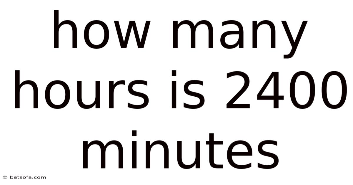 Have you everstared at a timer showing 2400 minutes and wondered how that stretches into hours? Converting large blocks of time from minutes to hours is a everyday skill—whether you’re planning a marathon study session, scheduling a factory shift, or simply trying to make sense of a lengthy video playlist. Which means in this article we’ll unpack the exact relationship between 2400 minutes and hours, walk through the math step‑by‑step, illustrate the concept with real‑world scenarios, and clarify the common pitfalls that trip up even seasoned calculators. By the end, you’ll not only know the answer but also understand why the conversion works the way it does, giving you confidence to tackle any similar time‑translation problem Still holds up..
