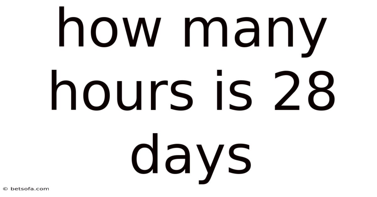Q5: Can I use this calculation for any 28-day period, regardless of the starting date? A: Absolutely. Whether the period starts on a weekday, weekend, or includes a holiday, the total remains 672 hours. The calculation is independent of the specific days of the week or external events.
