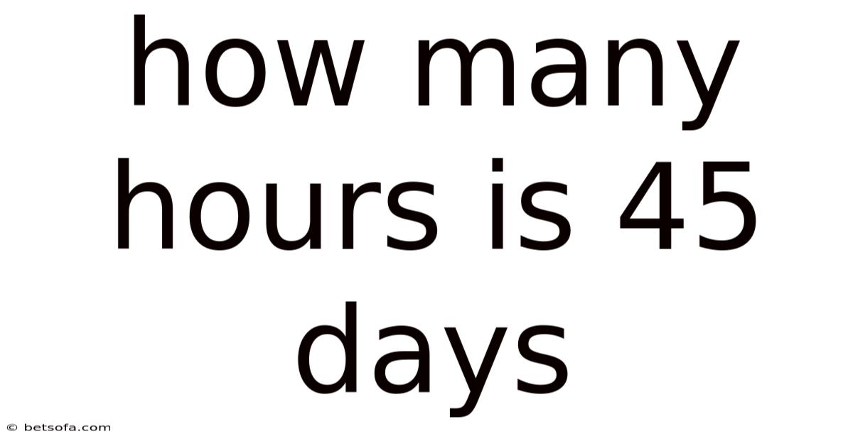 Q: How many hours are in 45 days exactly? A: 45 days is exactly 1,080 hours, since each day has 24 hours.