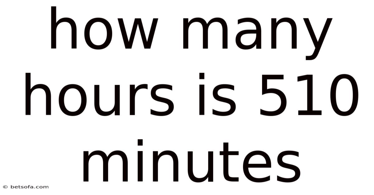 Understanding how many hours is 510 minutes provides more than a simple numerical answer; it strengthens your ability to interpret, plan, and communicate time effectively across a wide range of situations. Think about it: by mastering this conversion, you gain a practical skill that supports accuracy in work, education, travel, and daily life. Whether expressed as 8.