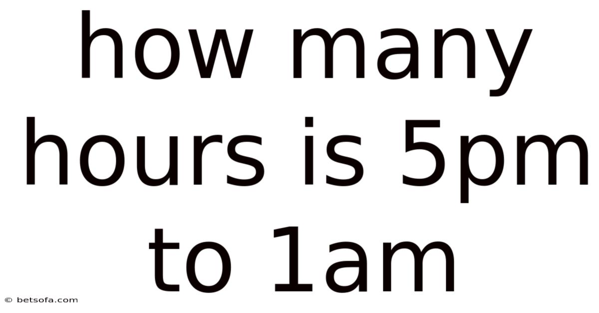 Ever staredat a clock and wondered, “how many hours is 5pm to 1am?” Whether you’re planning a late‑night study session, scheduling a shift at work, or simply trying to figure out a travel itinerary, understanding the exact span of time between two points on a 12‑hour clock can save you both minutes and headaches. In this article we’ll break down the calculation step by step, explore real‑world scenarios, and address the most common misconceptions that often trip people up. By the end, you’ll not only know that the answer is 8 hours, but you’ll also have a reliable mental toolkit for any similar time‑range question.