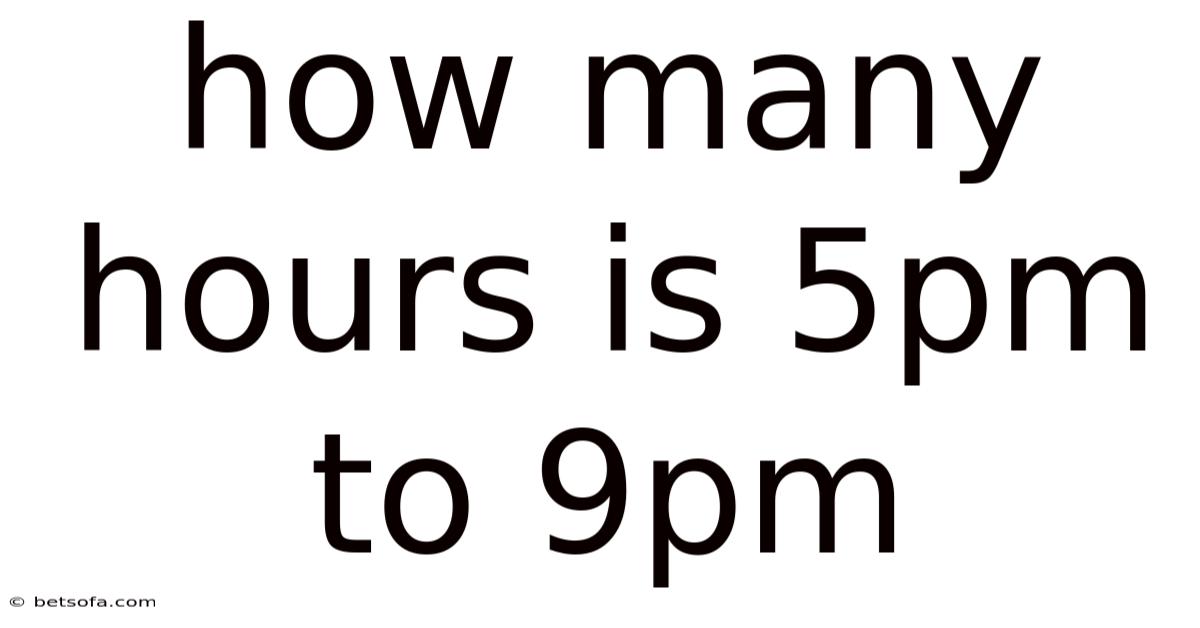 The query "how many hours is 5pm to 9pm?" fundamentally asks for the elapsed time between two specific points on a 12-hour clock system. This is a common request in contexts ranging from personal planning to professional coordination. Understanding this duration is crucial for managing schedules effectively, ensuring punctuality, and making efficient use of our finite time. The answer, while numerically simple, forms the bedrock for more complex time-based calculations, such as determining deadlines, calculating travel time, or understanding work shifts. On the flip side, it bridges the gap between abstract time and concrete action, allowing us to translate clock faces into measurable units we can plan around. This article will not only provide the definitive answer but also illuminate the broader significance of mastering such fundamental temporal literacy.