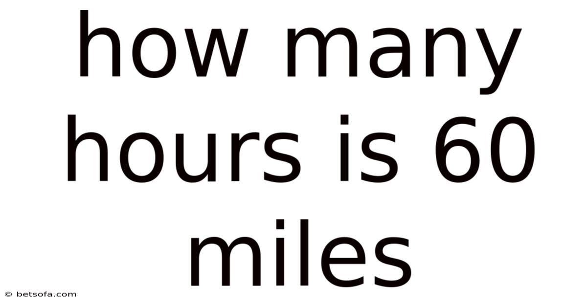 How Many Hours Is 60Miles? Understanding Time, Distance, and Speed When someone asks, “How many hours is 60 miles?” they are really asking about the relationship between distance, speed, and time. The answer is not a single number; it varies depending on how fast you travel. In everyday life, this question appears when planning a road trip, estimating a commute, or figuring out how long a bike ride will take. By unpacking the underlying physics and mathematics, you can quickly convert any distance into an estimated travel time—provided you know (or can estimate) your speed.
