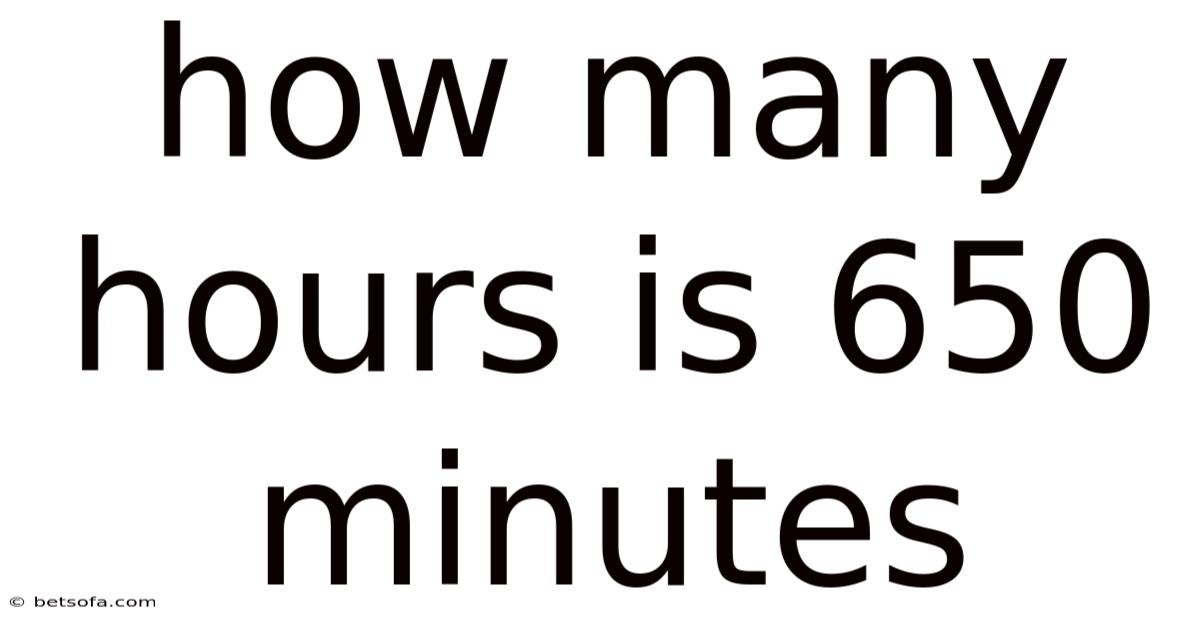 Answer: 650 minutes equals 10 hours and 50 minutes. You get 10 full hours (10 × 60 = 600 minutes) and 50 minutes remaining Worth keeping that in mind..