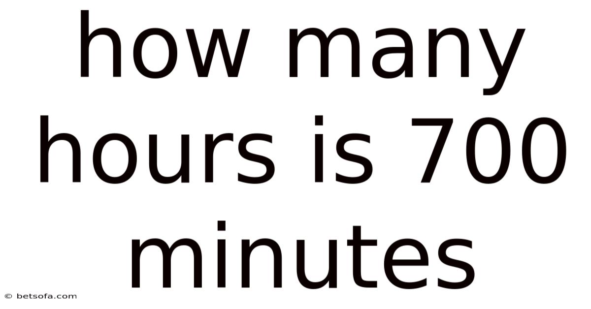 Have you ever found yourself staring at a clock, a recipe, or a workout plan, only to be stumped by a time given in minutes that feels too large to process intuitively? In practice, you're not alone. The simple question, "how many hours is 700 minutes?Now, " is a perfect gateway into the fundamental skill of time conversion—a daily necessity for effective planning, scheduling, and understanding the world around us. On top of that, while the answer is a precise number, the journey to that number reveals the elegant logic of our timekeeping system and equips you with a transferable skill. Think about it: this article will not only give you the definitive answer but will walk you through the why and how, transforming a basic arithmetic problem into a cornerstone of practical numeracy. Understanding this conversion means moving from guesswork to confident calculation in everything from managing a project timeline to deciphering a movie's runtime Worth keeping that in mind..