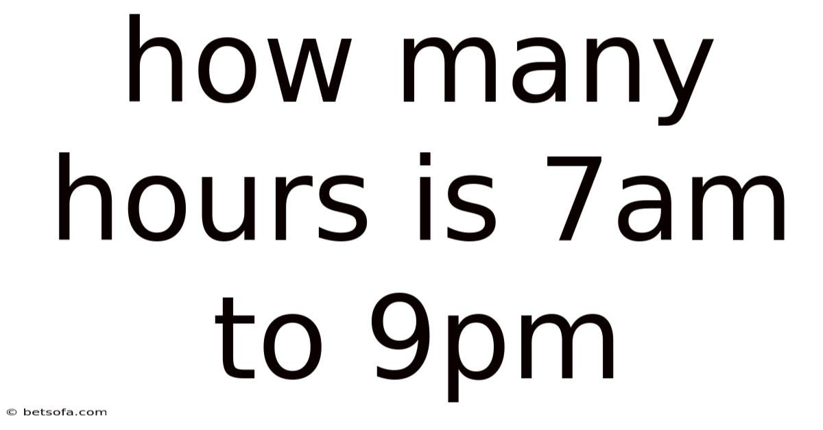 The question "how many hours is 7am to 9pm?" seems deceptively simple on the surface. This article will meticulously dissect the 7am to 9pm timeframe, exploring its duration, implications, and the fundamental principles of time calculation that underpin it. We glance at a clock, see the transition from 7 in the morning to 9 in the evening, and instinctively know it's a significant chunk of time. Still, understanding the precise duration, its context, and why it matters requires a deeper dive. Whether you're scheduling a long shift, planning an extended event, or just satisfying a curious mind, this exploration provides a complete picture Easy to understand, harder to ignore..