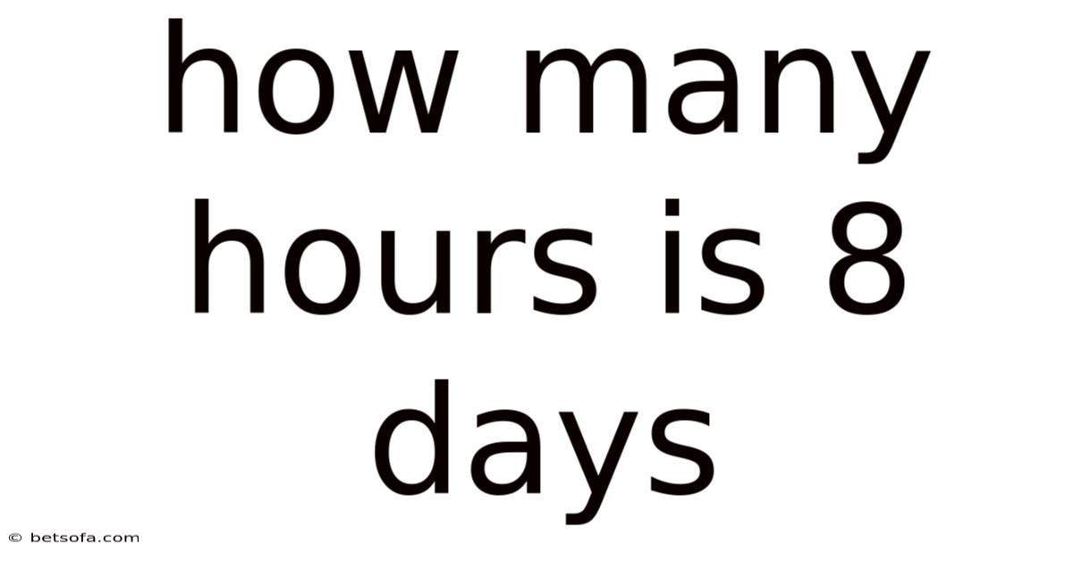 The concept of time often serves as both a foundational element of daily life and a critical factor influencing productivity and efficiency. At its core, understanding how many hours correspond to eight days is not merely a numerical calculation; it involves grasping the interplay between time management, work structures, and personal goals. Whether calculating the total labor required for a project spanning multiple days or assessing financial commitments tied to time allocation, precision here holds significant weight. The phrase "how many hours is 8 days" encapsulates a universal inquiry that resonates across industries, from project management to personal finance. It challenges individuals to reconcile abstract notions of duration with concrete outcomes, making it a practical yet essential subject for anyone seeking to optimize their time effectively. In this context, the task at hand transcends mere arithmetic—it demands a nuanced approach that considers variability in workflows,