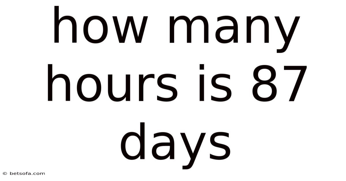 Understanding the relationship between time units is foundational for navigating daily life, academic pursuits, and professional tasks. The question "how many hours is 87 days?" encapsulates a universal need for precision in time management and calculation. This query bridges the gap between abstract numerical concepts and practical application, requiring a clear grasp of how days translate into measurable units. Whether calculating work hours, travel durations, or personal commitments, converting days into hours demands a systematic approach. Such tasks often arise in contexts where efficiency is critical, whether planning a project timeline, budgeting for events, or managing daily responsibilities. The complexity arises from varying definitions of a day—whether 24 hours, 24.6 hours, or 7-day periods—and the need to contextualize the time frame appropriately. This article aims to demystify the process, offering a structured framework to transform the abstract into the concrete, ensuring clarity and accuracy in every calculation. By addressing the core of time conversion, we lay the groundwork for more precise decision-making, making it essential for individuals and organizations alike to grasp this fundamental relationship effectively.
