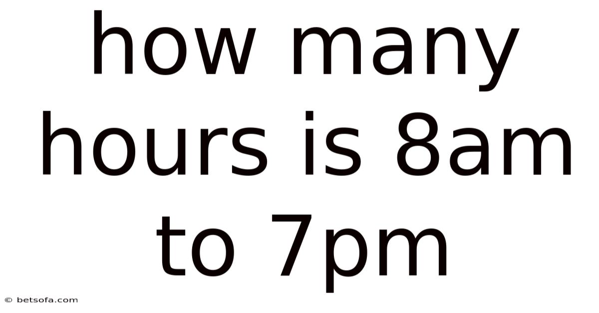 At first glance, the question "how many hours is 8am to 7pm?Misunderstanding it can lead to missed appointments, payroll errors, or inefficient days. Still, yet, this simple calculation is a cornerstone of daily planning, workforce management, event scheduling, and personal time management. " seems almost trivial. The direct answer is 11 hours, but arriving at that number correctly requires a clear grasp of how our 12-hour clock system works, especially around the critical midday and midnight transitions. This article will deconstruct this fundamental time calculation, exploring not just the "what" but the "why" and "how," ensuring you master this essential skill for both personal and professional life But it adds up..