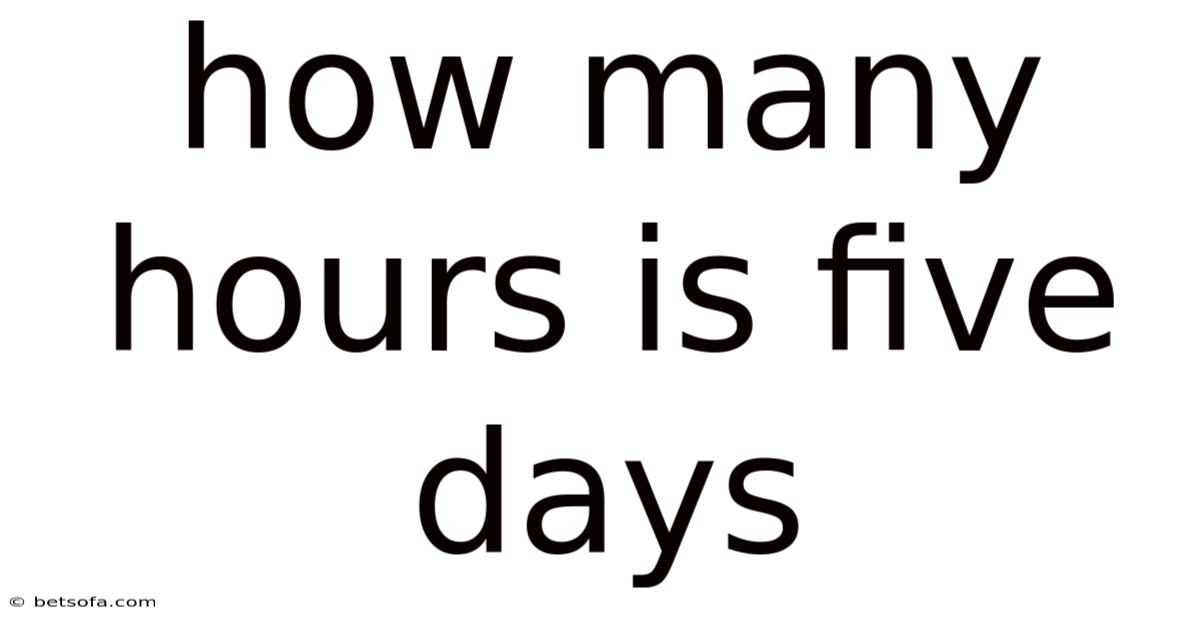 How many hours is five days? This question might seem simple at first glance, but its answer depends on a variety of factors, including cultural norms, work schedules, and individual circumstances. For most people, the concept of "five days" is tied to a standard workweek, but the actual number of hours can vary significantly. Whether you’re planning a project, managing a job, or simply curious about time calculations, understanding how many hours are in five days is essential. This article will explore the nuances of this question, breaking down the logic behind the calculation, providing real-world examples, and addressing common misconceptions. By the end, you’ll have a clear, comprehensive understanding of how to determine the exact number of hours in five days, depending on the context.