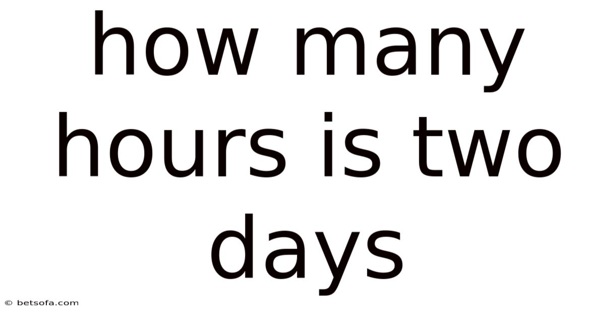 How many hours is two days? This seemingly simple question often arises in everyday situations, from planning schedules to understanding project timelines. At first glance, the answer might appear obvious—after all, a day is typically 24 hours, so two days should logically equal 48 hours. On the flip side, the concept of time can sometimes be nuanced, depending on context, cultural interpretations, or specific definitions of a "day." In this article, we will explore the precise calculation of hours in two days, dig into the reasoning behind it, and address common scenarios where this knowledge becomes essential. Whether you’re organizing a two-day event, managing work hours, or simply curious about time conversions, understanding this relationship is foundational. By the end of this guide, you’ll not only know the exact number of hours in two days but also gain insights into how time is structured and applied in real-world contexts Surprisingly effective..