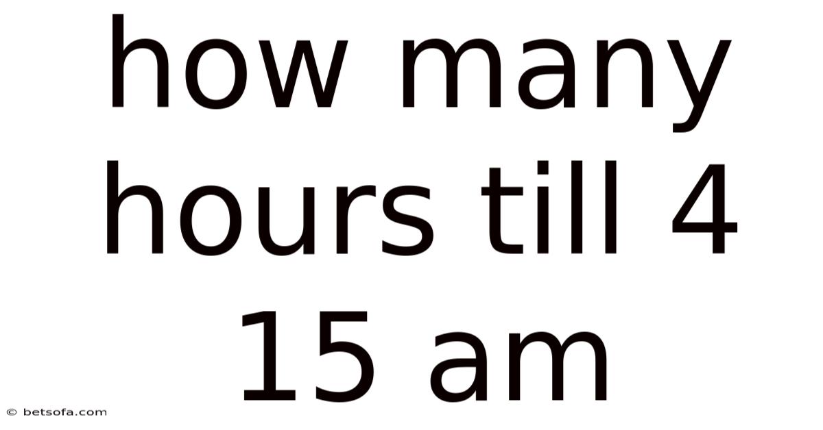 The phrase "how many hours till 4:15 AM" is not just a simple question—it reflects the need for clarity in planning. To give you an idea, if you're trying to wake up at 4:15 AM, you need to know how many hours are left before that time. This is especially important in a world where punctuality and efficiency are highly valued Not complicated — just consistent..