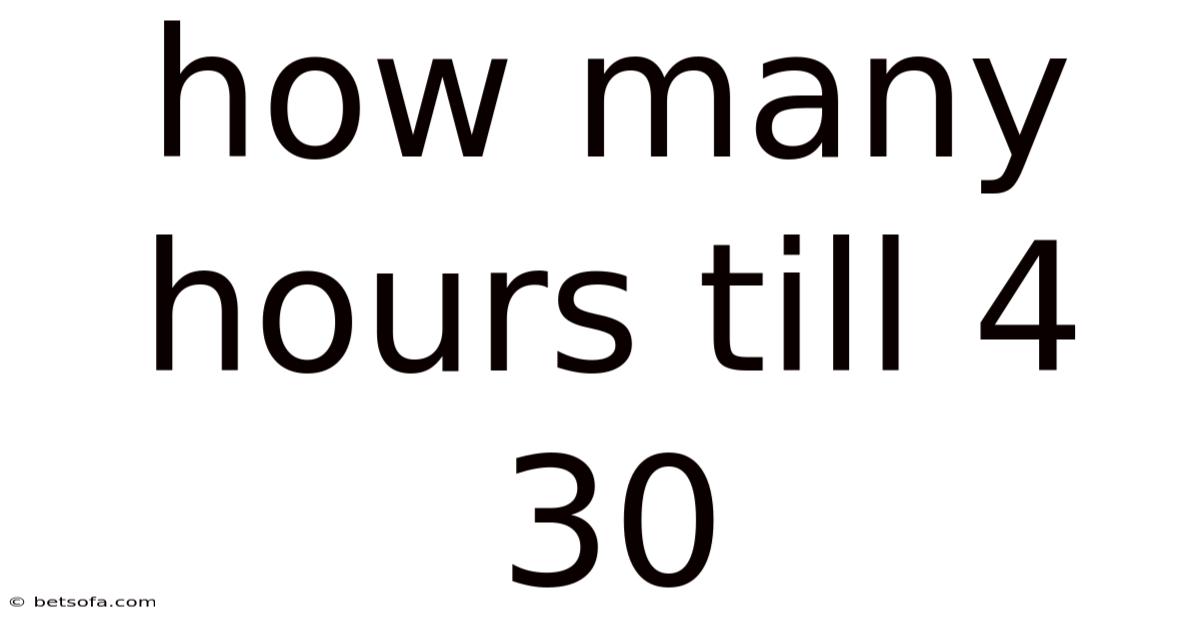 Time is a fundamental construct that governs our lives, dictating schedules, deadlines, and the very rhythm of our daily existence. Even so, in our modern, digitally-driven world, the simple act of determining the duration between a current moment and a specific future time has become a common computational task. So whether you are planning a meeting, setting an alarm, or tracking a project milestone, the question of how many hours till 4:30 is a frequent and practical inquiry. But this article provides a comprehensive exploration of this specific temporal calculation, breaking down the methodology required to determine the exact number of hours and minutes remaining until 4:30 PM or AM. We will dissect the logic behind the math, offer real-world applications, and clarify potential pitfalls to ensure you can perform this calculation with confidence in any scenario.