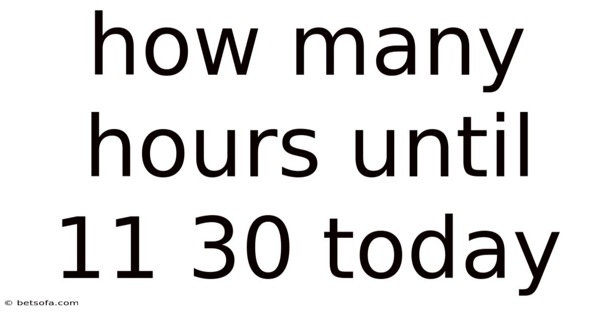 In our daily lives, we often find ourselves checking the time or calculating how much time is left until a specific moment. Consider this: " While it might seem like a straightforward inquiry, the answer can vary depending on the current time and the time zone you are in. One common question that many people ask is, "How many hours until 11:30 today?This can be for various reasons, such as waiting for an appointment, preparing for an event, or simply tracking the passage of time. In this article, we will explore the concept of time calculation, how to determine the number of hours until a specific time, and the importance of understanding time in our daily routines Small thing, real impact..