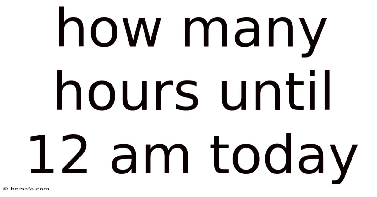 The journey from the present moment to midnight can be both a simple and complex endeavor, depending on how you choose to frame it. ** is a question that many of us might ask at different points in our daily lives, whether it’s to mark the end of a long workday, to prepare for a late-night event, or simply to reflect on the passage of time. In practice, **How many hours until 12 AM today? This seemingly straightforward inquiry actually touches on the layered workings of timekeeping, human behavior, and the universal quest for understanding the temporal landscape around us. In this article, we’ll explore the concept of time in relation to 12 AM, delving into the mechanics behind determining the hours left until midnight, the cultural significance of this time, and the ways in which our perception of time can vary Small thing, real impact..