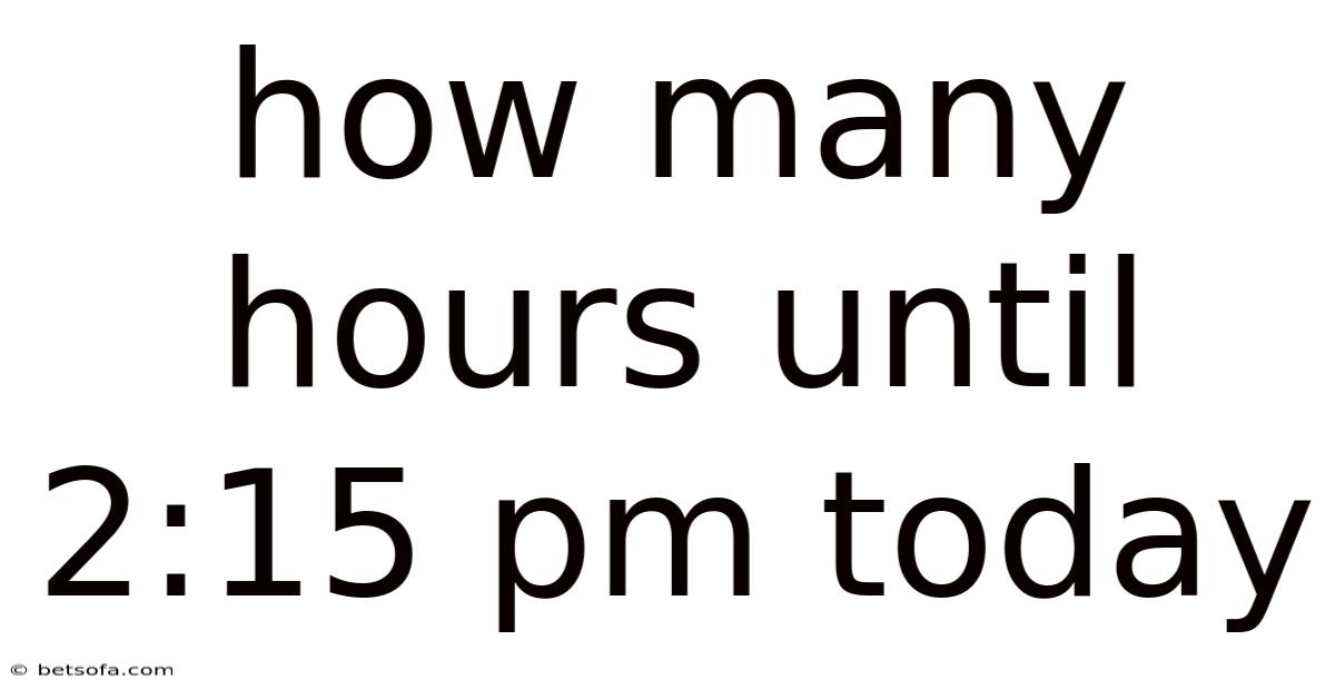 Are you ever in a situation where you need to quickly determine the time remaining until a specific hour or time of day? But in this article, we'll explore how to calculate the time remaining until a specific time of day, focusing on the example of determining how many hours until 2:15 PM today. This seemingly simple question can be a practical one for many reasons, from personal scheduling to event planning. To give you an idea, you might be curious about how many hours are left until 2:15 PM today. By the end of this piece, you'll have a clear understanding of how to approach this calculation, whether it's for personal use or for more complex scheduling needs That's the part that actually makes a difference..