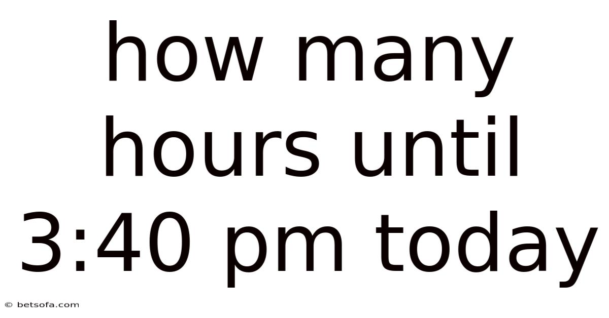 Have you ever found yourself staring at your phone, wondering how many hours until 3:40 pm today? That's why in this article, we’ll break down the concept of calculating hours to a future time, walk through step‑by‑step methods, explore real‑world examples, and highlight common pitfalls that can lead to confusion. But whether you’re planning a meeting, scheduling a workout, or simply curious about the passage of time, knowing the exact number of hours remaining until a specific moment is a practical skill. By the end, you’ll be equipped to answer the question quickly and confidently, no matter what time of day it is Turns out it matters..