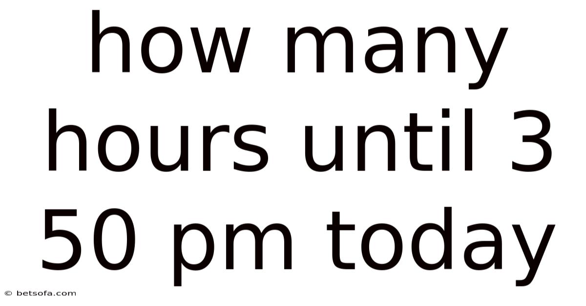 Have you ever found yourself wondering how much time you have left until a specific event later in the day? Perhaps you have an important meeting, a doctor's appointment, or need to pick up your children from school at 3:50 PM today. Understanding how to calculate the hours remaining until a specific time is a practical skill that we use in our daily lives, whether we're planning our schedule, managing deadlines, or simply counting down to something we're looking forward to. In this full breakdown, we'll explore how to determine exactly how many hours are left until 3:50 PM today, regardless of what time it is right now Small thing, real impact..