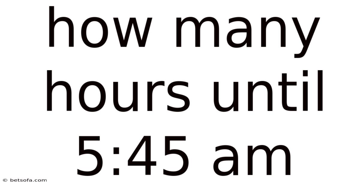 Many people find themselves wondering how many hours remain until a specific time, especially when planning their sleep, work schedules, or travel plans. One common query is: how many hours until 5:45 AM? This question often arises when someone needs to wake up early, catch a flight, or prepare for an important event. Calculating the hours until 5:45 AM involves understanding the current time and performing a simple time difference calculation. Which means whether you're a student, a professional, or just someone trying to manage your day better, knowing how to determine the hours until a specific time can be incredibly useful. In this article, we’ll explore how to calculate the hours until 5:45 AM, why this skill is important, and how to avoid common mistakes in time calculations.