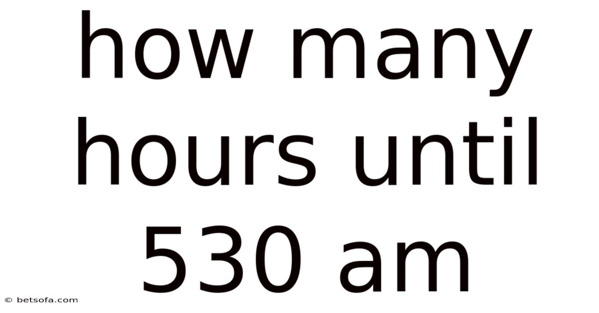 The question of "how many hours until 5:30 AM" is a common query that arises when planning activities, setting schedules, or simply managing time effectively. Understanding how to calculate the hours remaining until a specific time, such as 5:30 AM, is crucial for both personal and professional time management. This article digs into the concept of calculating hours until a given time, providing a thorough look that includes step-by-step instructions, practical examples, and insights into common misunderstandings Not complicated — just consistent..