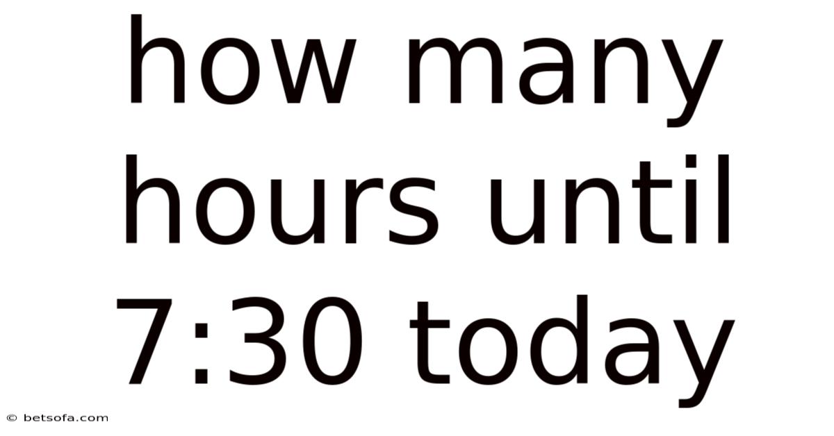 Have you ever found yourself glancing at the clock and urgently wondering, "how many hours until 7:30 today"**?That's why ** This seemingly simple question is a universal human experience, reflecting our deep-seated need to structure our lives around time. Whether you are counting down to a crucial business meeting, a child’s school pickup, a scheduled medical appointment, or a long-awaited evening rendezvous, the act of calculating the remaining time becomes a moment of focused anticipation. The specific target of 7:30—a time often associated with the end of the workday, the start of prime evening activities, or the quiet hours of the night—serves as a perfect anchor for this temporal calculation Simple as that..