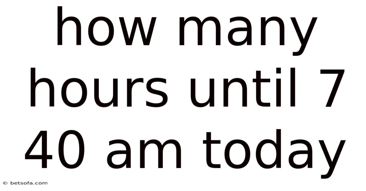 Understanding how many hours remain until 7:40 AM today requires more than a quick glance at your phone. In real terms, it involves recognizing your current local time, accounting for how time is divided into hours and minutes, and translating that difference into a clear, usable format. For many people, especially those working unusual hours or managing tight schedules, this kind of time awareness can reduce stress, improve punctuality, and create a stronger sense of control over daily life That's the part that actually makes a difference..