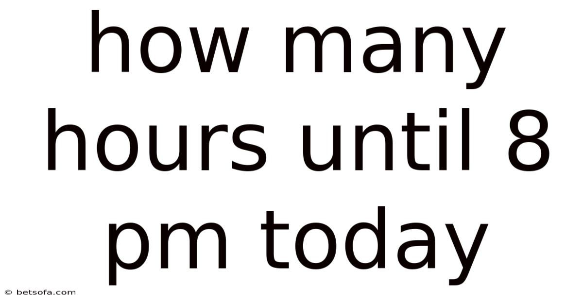 At its core, the query “how many hours until 8 pm today” is a straightforward time‑difference calculation. Time is measured in 24‑hour cycles, but most people think in terms of a.m. and p.m. blocks. To answer the question accurately, you need two pieces of information: the current time and the target time (8 pm). The difference between these two points, expressed in hours, tells you exactly how much of the day remains before the evening milestone arrives.