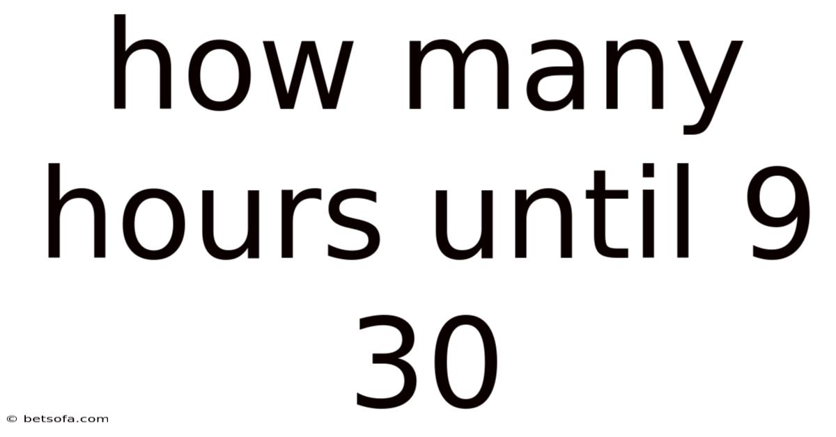The seemingly simple question of "How many hours until 9:30?" highlights the profound importance of time management in our modern world. While the calculation itself is straightforward, the ability to accurately assess and put to use time is a valuable skill that enhances productivity, reduces stress, and empowers us to live more fulfilling lives. Plus, by understanding the principles of time calculation, leveraging available tools, and practicing mindful planning, we can take control of our time and achieve our goals, both big and small. When all is said and done, mastering time isn't about doing more, but about doing the right things, at the right time, for a more balanced and successful existence Worth keeping that in mind..