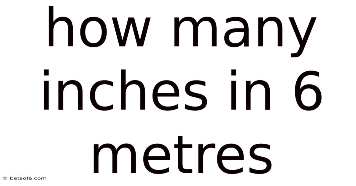 When you’re converting measurements for a DIY project, a science experiment, or simply satisfying a curious mind, the question “how many inches in 6 metres?” often pops up. That's why in this article we will explore that relationship in depth, walk through the conversion step‑by‑step, illustrate real‑world scenarios where the conversion matters, and clear up common misconceptions. Also, while the metric system (metres) and the imperial system (inches) belong to two different measurement families, converting between them is straightforward once you understand the basic relationship. By the end, you’ll not only know the exact number of inches in 6 metres but also feel confident applying the same method to any other length conversion you encounter The details matter here. Turns out it matters..