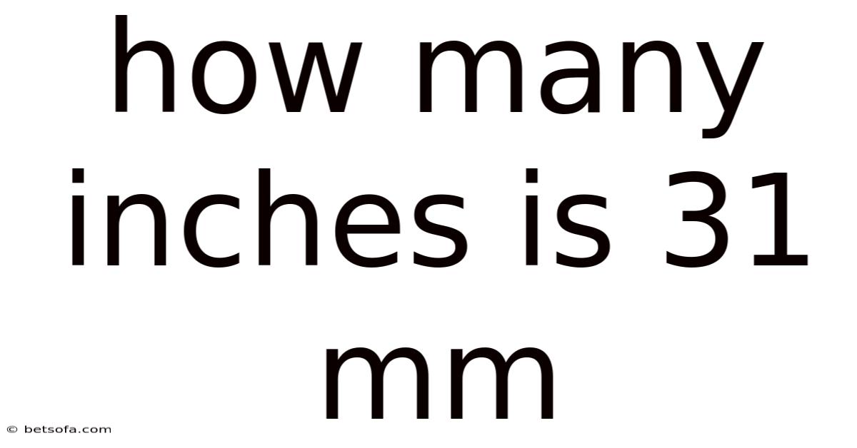 Q: How do I convert 31 mm to inches without a calculator? A: You can estimate by remembering that 25 mm is about 1 inch. Since 31 mm is a bit more than 25 mm, it should be a little over 1 inch—roughly 1.2 inches No workaround needed..