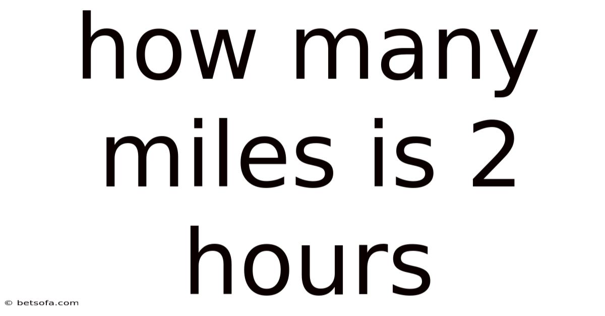 Understanding how many miles can be covered in 2 hours is a practical and essential skill that has applications in various aspects of life. By grasping the relationship between speed, time, and distance, we can make informed decisions about travel, planning, and resource allocation. Whether you're driving a car, cycling, or walking, the principles of distance and time remain the same. By considering factors such as speed, time, and external conditions, we can accurately calculate distances and make the most of our time and resources.