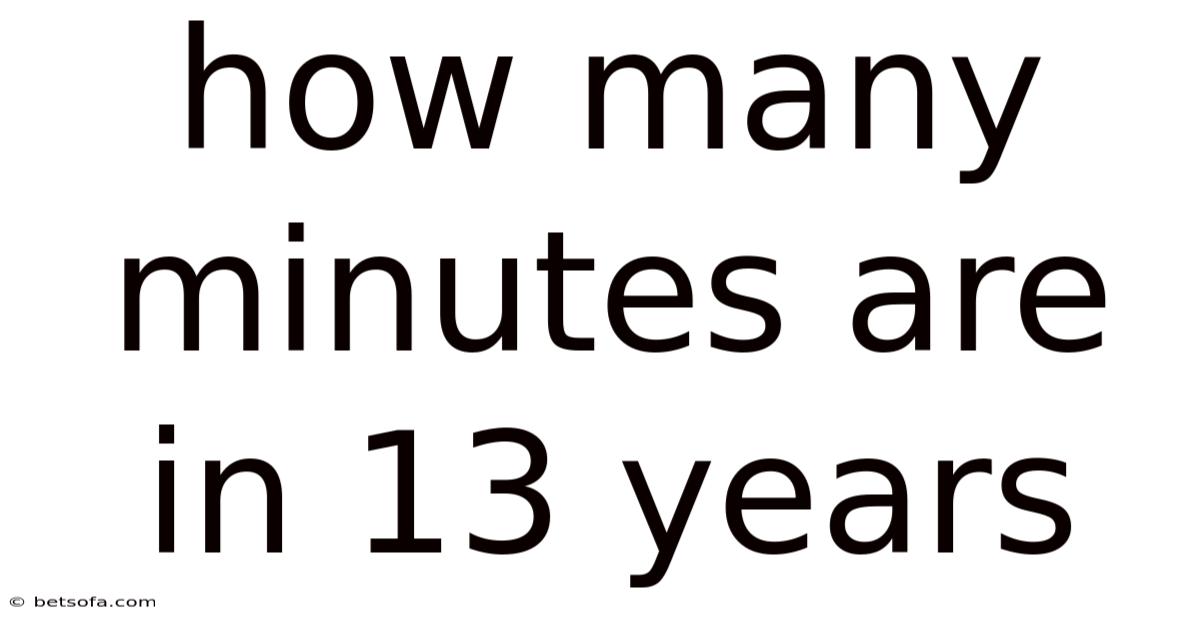 Minutes in Thirteen Years: Finally, each hour consists of 60 minutes. Multiplying the total hours by 60 yields the minutes:
