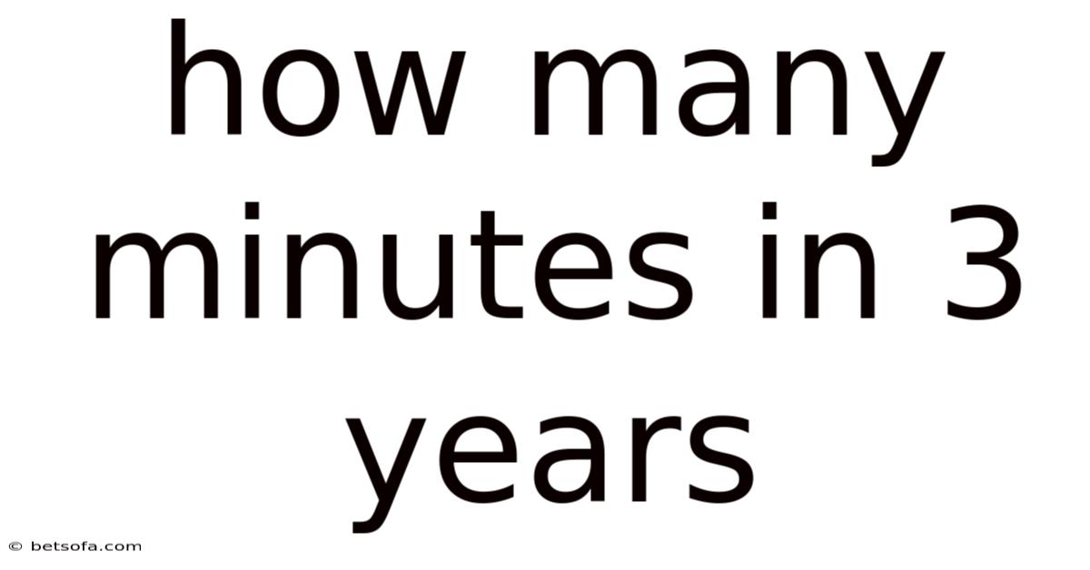 Time is one of the most fundamental concepts that shapes our daily lives, yet many of us rarely stop to consider just how much of it passes within longer periods. When we think about three years, it might seem like an abstract duration—perhaps the time it takes to complete a degree, grow a business, or watch a child progress through multiple grade levels. On the flip side, understanding exactly how many minutes are contained within three years can provide a fascinating perspective on the sheer magnitude of time we often take for granted. Think about it: the question "how many minutes in 3 years" invites us to explore the mathematical breakdown of time units and appreciate the precision required when calculating durations across different calendar periods. Whether you need this information for academic purposes, project planning, or simply out of curiosity, this thorough look will walk you through every aspect of calculating minutes across a three-year span Practical, not theoretical..