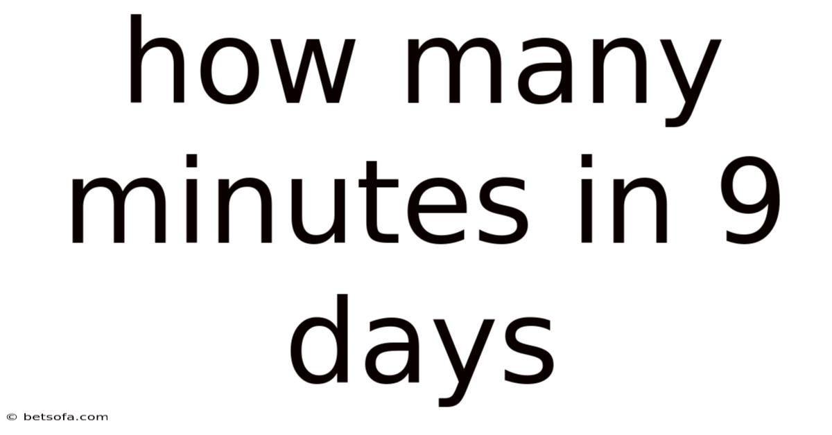 Time is the fundamental fabric of our existence, governing everything from the rhythm of our daily lives to the vast scales of cosmic events. When we seek to quantify this continuum, we often break it down into manageable units, converting large spans into smaller, more comprehensible measures. The question of how many minutes in 9 days serves as a perfect example of this conversion process, bridging the gap between our intuitive understanding of days and the precise metric of minutes. Think about it: this calculation is not merely a mathematical exercise; it is a practical tool used in project management, scientific experiments, travel planning, and personal productivity. By mastering this specific conversion, we gain a deeper appreciation for the sheer volume of time available to us in a short period. This article will provide a practical guide to calculating the total minutes within a nine-day span, explaining the underlying principles and exploring the real-world significance of such a conversion.