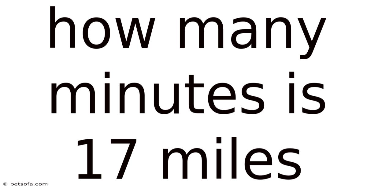 How many minutes is 17 miles? This question seems simple at first glance, but the answer is far from straightforward. The time it takes to cover 17 miles depends on a variety of factors, including speed, mode of transportation, terrain, and even traffic conditions. For someone planning a road trip, a cycling adventure, or a walking journey, understanding this calculation is essential. The phrase "how many minutes is 17 miles" isn’t just about numbers—it’s about context. Without knowing the specific circumstances, any answer would be incomplete. This article will explore the nuances of this question, breaking down the variables that influence travel time and providing practical insights for different scenarios Worth keeping that in mind..