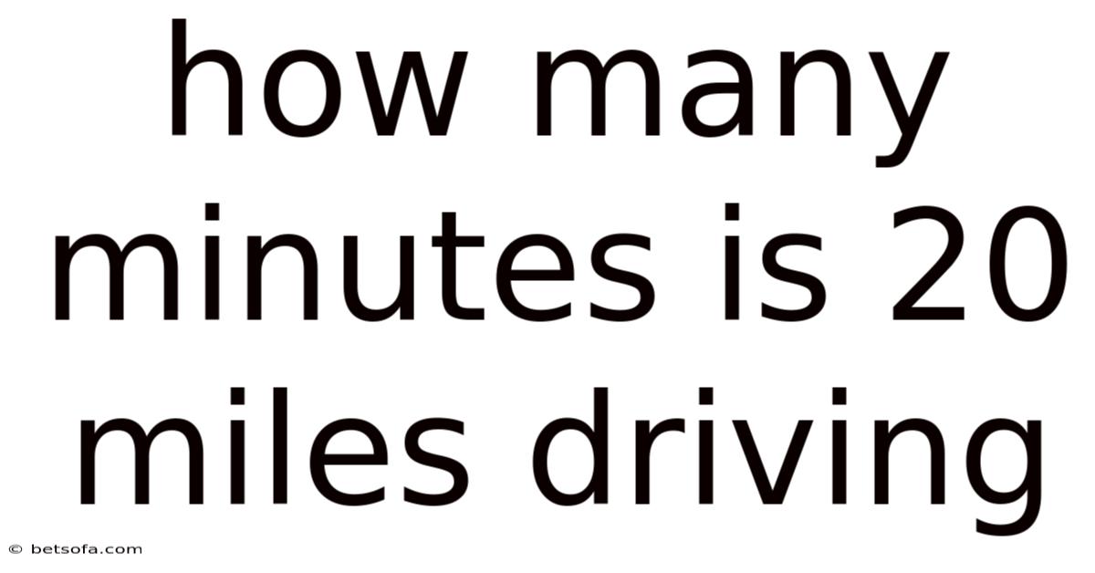 This multifaceted reality underscores the inadequacy of simplistic calculations based solely on distance and a fixed average speed. The question "how many minutes is 20 miles driving?" does not yield a single, universal answer Most people skip this — try not to..