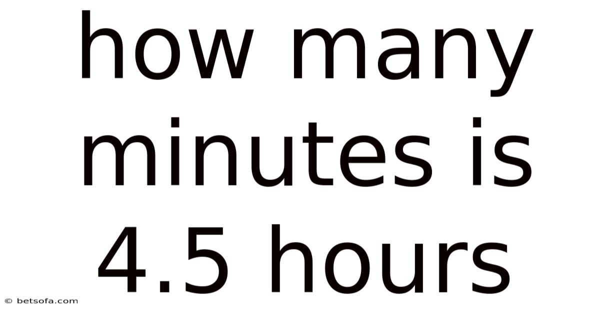 Q: How many minutes are in 4.5 hours? A: 4.5 hours is equal to 270 minutes. This is calculated by multiplying 4.5 by 60 And that's really what it comes down to..
